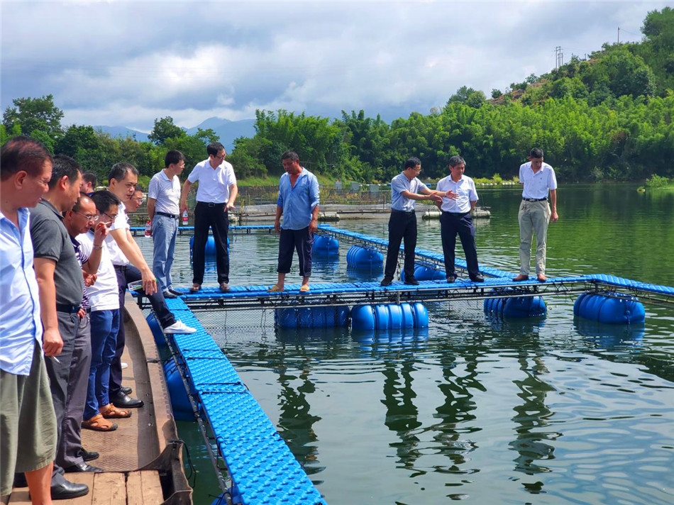 为深入践行习近平总书记“绿水青山就是金山银山”理念,贯彻落实好副省长、副总河长兼闽江流域河长李德金在“2020年闽江流域河湖长制工作视频会议”上关于水口库区水上养殖设施升级改造工作的讲话精神,8月28日,由省海洋与渔业局二级巡视员罗志涛带队,携省局相关部门负责人、专家,和南平、古田、闽清等地渔业、农牧业主管部门有关领导共同组成的验收组,赶赴延平区樟湖镇樟湖库区,对恒一公司权属企业福州安远智能装备有限公司承建的内水水上养殖设施升级改造示范项目进行验收。