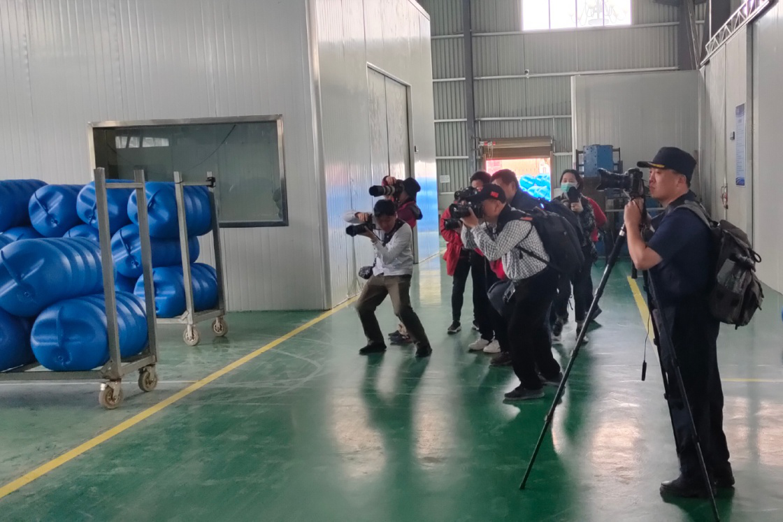 摄影家们在安远公司霞浦分公司工作人员的带领下,参观了公司生产车间,观看了全塑胶渔排组件的生产过程。摄影家们用一个个镜头捕捉浮球、踏板等生产成型的瞬间,用一帧帧画面记录下生产车间工作人员认真、专业操作的身影,每一位摄影师们都对安远公司霞浦分公司井然有序的厂区管理、一线员工朝气蓬勃的精神风貌深深触动。