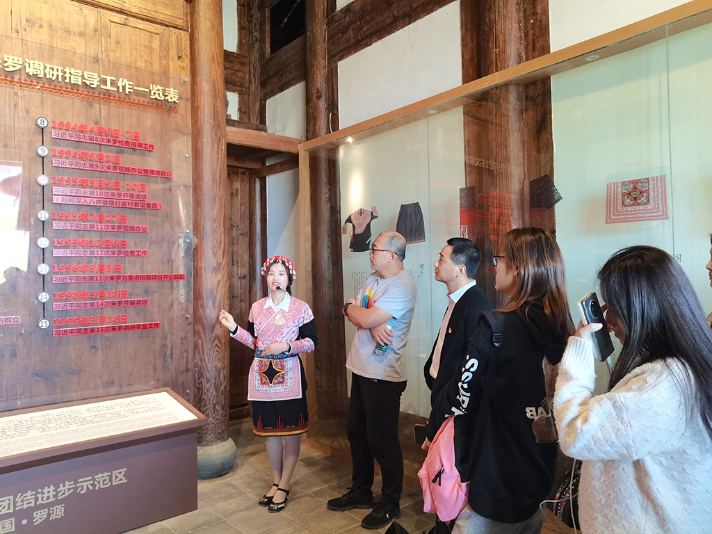 在罗源县松山镇八井村畲族文化民俗小镇,党员们通过参观畲族文化民俗展示馆、畲族革命陈列馆、畲族技艺传承馆等主题展区,认真了解了畲族非遗文化、红色传承、解困脱贫、新农村建设等历史。这曾是一个贫困村,习近平总书记在福建工作期间,曾数次到该村调研指导脱贫解困工作,正是在习近平总书记以人民为中心的思想引领下,八井村找到了发展畲乡特色旅游业的路子,通过不断健全完善文旅产业链,村容村貌发生了翻天覆地的变化,畲族群众迎来了幸福安逸的好生活。