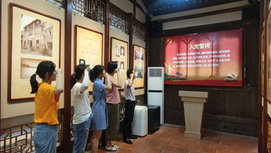 中共福州市委旧址党史馆内安远公司党支部书记刘华虎带领全体党员重温入党誓词。党员们以铿锵有力的誓言,表达自己坚定不移、永远跟党走的理想信念和发扬革命传统,牢记初心使命的坚定决心。